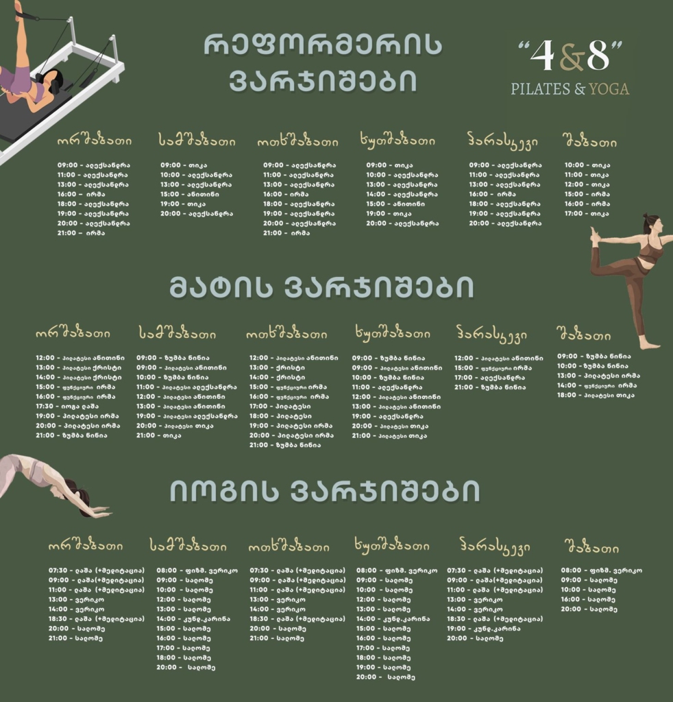 პიალატესისა და იოგას ცენტრის განრიგი